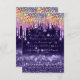 Entrez dans un monde de célébration magique avec l'invitation de mariage et d'anniversaire Glitter Drip Wedding Birthday Party Purple Rainbow de Zazzle. Cette invitation enchanteresse présente un magnifique fond violet avec un effet de goutte de paillettes captivant qui imite un arc-en-ciel en cascade, créant ainsi le ton parfait pour un événement festif et glamour.