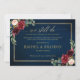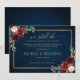 Aquarelle rouge bordeaux marine rose floral mariage annulation, changement de plans, modèle reporté avec cadre doré et lettrage doré avec feuillage botanique vert et feuilles d'eucalyptus sur fond bleu marine. Ce beau design facile à personnaliser peut correspondre facilement à vos couleurs, styles et thème de mariage et est un choix parfait pour les mariages d'automne, de milieu d'été ou d'hiver. Vous pouvez trouver plus de modèles assortis dans ma boutique ou me contacter si vous avez besoin d'aide pour la personnalisation du design.