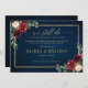 Aquarelle rouge bordeaux marine rose floral mariage annulé, changement de plans, modèle reporté avec cadre doré et lettrage doré avec feuillage botanique vert et feuilles d'eucalyptus sur fond bleu marine. Ce beau design facile à personnaliser peut correspondre facilement à vos couleurs, styles et thème de mariage et est un choix parfait pour les mariages d'automne, de milieu d'été ou d'hiver. Vous pouvez trouver plus de modèles assortis dans ma boutique ou me contacter si vous avez besoin d'aide pour la personnalisation de la conception.