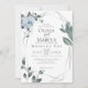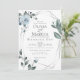 Faire-part de mariage | roses, feuilles et baies d'aquarelle dans un bleu poussiéreux moderne entourent un cadre géométrique de terrarium Argent avec une végétation sauge. Reverse est un bleu poussiéreux gratuit. Personnaliser texte, style de police, couleur et taille. OEuvre originale créée pour BarefootBride™ par © WhimsicalArtwork™ - Il s'agit d'une suite de papier à lettres Mariage complète avec papier à lettres mariage, baby shower et autres articles de papeterie d'événements correspondants.