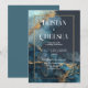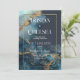 Invitation Mariage Aquarelle Bleu Marbre Or Luxe