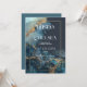 Attirez l'attention avec l'élégance dramatique et artistique de cette invitation de mariage luxueuse en feuille d'or. Le design est un chef-d'œuvre d'art abstrait fluide, mêlant des couleurs profondes et des accents scintillants. La palette principale est un mélange sombre de bleu marine profond et de bleu sarcelle/saphir vibrant, rendu dans un lavis d'aquarelle ou d'encre alcoolique qui imite le mouvement de la fumée ou du marbre. Un cadre rectangulaire en faux or proéminent et continu est placé au centre, offrant une limite élégante et propre pour votre texte. Ce cadre est dynamique, car il est entouré de lignes dramatiques de poussière d'or scintillante et de veines abstraites de feuille d'or qui se tissent à travers les lavis bleus, créant une texture riche et opulente. L'espace sombre et solide sur la droite équilibre la beauté chaotique de l'encre bleue sur la gauche. Ce style opulent moderne est parfait pour les couples qui prévoient un mariage de luxe en noir et blanc, une soirée de gala sophistiquée ou tout événement mettant l'accent sur l'art abstrait, les tons de bijoux riches et les accents métalliques luxueux. Ce design est parfait pour les invitations de mariage de luxe, les annonces d'événements de gala élégants, les invitations de fête de fiançailles d'art