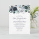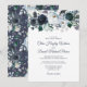 Cartes d'invitation de mariage élégantes bleu marine et bleu poussiéreux avec un fond blanc tendance qui peut être changé en n'importe quelle couleur, fleurs aquarelles bleues boho rustiques et modèle de mariage moderne.
