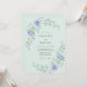 De délicates fleurs aquarelles en pervenche et vert menthe doux se déversent sur un fond de menthe pâle. Ce design évoque une atmosphère sereine et romantique, parfaite pour une réunion fantaisiste et inspirée de la nature. Il présente des arrangements floraux doux avec des touches de lavande et un feuillage vert doux.
