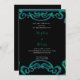 Invitation Mariage Art Déco Fatigué Noir, Vert & Bleu