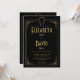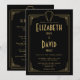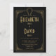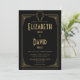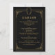 Cette invitation de mariage chic noire et or dans le style art déco des années 1920 peut être personnalisée avec vos informations dans une typographie élégante et votre RSVP et détails au verso. Conçu par Thisisnotme©
