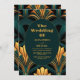 Invitation Mariage Art déco vert et or