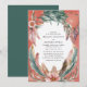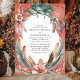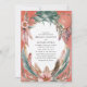 Cette invitation de mariage bohème présente une délicate couronne de plumes, de feuilles et de fleurs entourant une zone de texte centrale, avec un attrape-rêves ajoutant une touche fantaisiste. Placée sur un fond corail doux, les tons terreux et les éléments naturels créent une atmosphère sereine et libre, parfaite pour un mariage inspiré du style bohème. Ce design capture l'essence d'une célébration décontractée et amoureuse de la nature, idéale pour les couples recherchant un style de mariage unique et détendu.