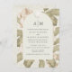 Célébrez votre amour avec une invitation de mariage inspirée par la beauté d'un luxuriant jardin botanique tropical. Cette invitation de mariage de jardin botanique présente un design raffiné de fleurs et de feuilles tropicales dans des tons chauds de tan, de vert kaki doux et de pêche délicat, créant une esthétique intemporelle mais tournée vers la nature.