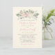 Cette élégante invitation de mariage présente une écriture rose douce avec un blason floral botanique romantique dans des tons de rose et de verdure sauge. Le design est posé sur un fond blanc chaud et propre pour un look de jardin classique. Parfait pour les célébrations de printemps et d'été, des cérémonies en plein air aux mariages intemporels en église. Personnalisez avec vos noms, date et détails.