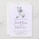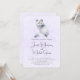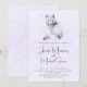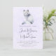 Invitation de mariage avec une image aquarelle d'un renard blanc avec des motifs floraux bleus fantaisistes sur tout son pelage.