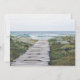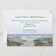 Invitation de mariage avec une image de promenade en planches à travers la végétation côtière. Une mer calme est visible au bout du chemin en planches. Le texte est imprimé au-dessus de l'horizon dans une couleur bleu-vert. Cette police de caractères script donne l'impression que l'invitation a été écrite à la main à l'aide d'une plume ancienne. Cela donne un aspect très unique, avec un espace pour les noms complets ou les prénoms en haut en plus gros caractères. Le reste des informations sur la cérémonie, avec réception et / ou formulation de réponse RSVP selon les besoins. Veuillez utiliser l'outil de conception pour changer la police si vous avez besoin de quelque chose de différent ou me contacter. Le papier feutré présenté est l'un des nombreux choix de papier disponibles.