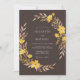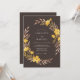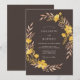 Un fond profond espresso donne le ton pour ce design botanique terreux. Des fleurs sauvages et des boutons d'or peints à la main dans des nuances de bronze et de jaune doré créent une bordure chaude et naturelle de feuillage et de pétales. Cette esthétique capture l'essence d'une atmosphère de récolte sombre, parfaite pour un thème rustique de forêt.