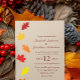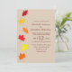 Carton d'invitation de mariage aux feuilles d'automne. Feuilles de chêne et d'érable sur un fond rustique brun clair