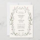 Élégant et stylé, ce faire-part de mariage présente de superbes fleurs sauvages pastel rose, violet et bleu peintes à la main et de la verdure sauge avec un joli papillon blanc disposés dans une charmante couronne vintage sur fond ivoire. Le verso comprend un beau bouquet assorti avec le monogramme de la mariée et du marié et un site web de mariage facultatif.