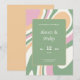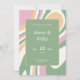 Vivez votre fête mariage avec nos invitations uniques de style abstrait! Apportez charme et élégance à votre événement avec un arrière - plan abstrait rose, vert et crème vibrant avec des lignes ondulées.