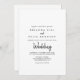 Cette faire-part de mariage moderne à l'avant et à l'arrière est parfaite pour un mariage rustique. Le design sobre et élégant présente une typographie de script classique et soignée en noir et blanc.