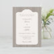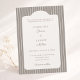 Célébrez votre jour de mariage avec cette élégante invitation de mariage rayée, mettant en vedette un fond ivoire intemporel associé à des rayures taupe chaudes et douces. La mise en page propre et classique crée un look raffiné qui se sent à la fois moderne et traditionnel, ce qui en fait un choix parfait pour les couples qui aiment l'élégance discrète.