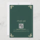 Rendez votre journée spéciale inoubliable avec notre invitation de mariage luxueuse vintage baroque or et vert émeraude. Ce design exquis présente un monogramme époustouflant du couple en haut, joliment encadré par des accents floraux victoriens complexes qui dégagent une sophistication raffinée et une élégance intemporelle. Un hommage parfait à une histoire d'amour qui mérite d'être célébrée avec style. Pour plus de commodité, incluez un code QR personnalisé au verso pour des RSVP en ligne sans effort et un accès direct à votre site web de mariage, assurant une expérience fluide pour vos invités.