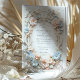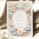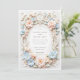 Cette élégante invitation de mariage allie l'art baroque à des détails floraux doux, créant un design luxueux et intemporel. Le cadre en figuier orné dans les tons crème et ivoire est orné de fleurs pastel, dont des hydrangées rose vif et bleu clair, dans un décor crème raffiné. Le design avant met en valeur un mélange harmonieux de charme vintage et de sophistication romantique, tandis que le fond présente un monogramme décoratif minimaliste entouré de motifs complexes et symétriques. Parfait pour les couples qui souhaitent un mariage classique, formel ou d'inspiration jardin, ce design offre un complément exquis et cohérent à votre suite papeterie.