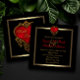 Coeur de satin rouge riche avec doré orné garnir élégant noir et or rouge coeur faire-part de mariage.
