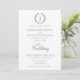 Cette couronne de Monogramme bleu Dusty sur un simple faire-part de mariage blanc est ce que vous recherchez. Il combine un style classique traditionnel avec un élégant script classique élégant pour le couple mariage. Si vous cherchez un noir sophistiqué sur le blanc, ne cherchez plus.