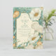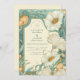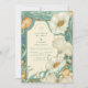 Un design mariage Art Nouveau avec des pavots blancs audacieux, des vignes turquoises et des accents dorés. Le cadre botanique complexe ajoute une touche vintage et artistique, idéale pour les couples à la recherche d'un thème mariage floral romantique mais dramatique.