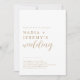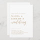 Simple faire-part de mariage blanche et or dans un style typographique moderne, chic et élégant. Tout le texte est personnalisable, personnalisable avec les noms des mariés et mariés, les détails du mariage/parti et le monogramme. Parfait pour les mariages et les fiançailles.
