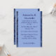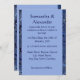 Ce faire-part de mariage est doté d'un arrière - plan bleu clair, bordé d'un motif en patchwork, dans des tons principalement bleus. Joli et contemporain.