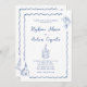 Invitation Mariage bleu de Cobalt illustré en blanc