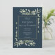 Invitation Mariage Bleu de Mer Profond et Feuillage de Vert D