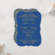 Invitation Mariage Bleu et Faux Gold Flourish Damask