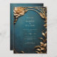 Invitation Mariage bleu et or enchanté