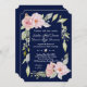 Invitation Mariage bleu marine à fleurs rose pâle