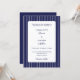 Célébrez votre jour de mariage avec cette élégante invitation de mariage rayée, avec un fond bleu marine intemporel associé à des rayures blanches. La mise en page propre et classique crée un look raffiné qui se sent à la fois moderne et traditionnel, ce qui en fait un choix parfait pour les couples qui aiment l'élégance discrète.