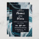 Invitation Mariage bleu marine et blanc avec vagues de marbre