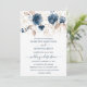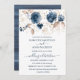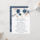 Elégante carte à plat de l'invitation de mariage illustrant l'aquarelle des fleurs bleu marine et or.