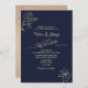 Elégant, moderne, minimaliste, simple or rose et faire-part de mariage bleu marine avec des inséparables uniques dessinés à la main, feuillage et script de calligraphie tendance.