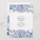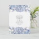 Carte faire-part de mariage hydrangée bleue. Vous y trouverez des dahlias, des chrysanthèmes et des roses.