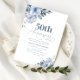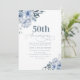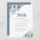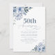 invitation anniversaire mariage bleu poussiéreux, aquarelle bohémienne fleurs bleu poussiéreux et élégant script de lettrage noir. Customisez le texte et les couleurs.