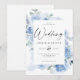 Invitation Mariage bohème bleu poussiéreux élégant floral ble