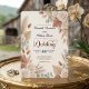 Élevez votre cérémonie en plein air romantique avec ce design floral neutre et terreux, mettant en vedette des fleurs roses poussiéreuses et des feuilles de palmier séchées dans une composition rustique moderne. Ce design de papeterie formelle utilise une hiérarchie visuelle centralisée, encadrant un script calligraphié élégant et une typographie serif classique dans une composition asymétrique douce d'éléments botaniques séchés. La palette établit une base de couleur crème et blanc cassé, superposée de feuilles de palmier couleur tan chaud, d'eucalyptus vert sauge atténué et d'accents floraux roses poussiéreux rendus dans un style d'illustration imprimée subtile. L'espace négatif stratégique assure une lisibilité à fort contraste pour tous les détails de l'événement en petits caractères. Il s'agit d'une image imprimée plate avec un effet de texture d'aquarelle,