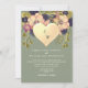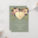 Faites une déclaration audacieuse et romantique avec cette invitation de mariage bohème à fleurs sauvages, mettant en vedette un arrangement floral aquarelle luxuriant dans des tons de bijoux, sur un fond vert sauge doux. Le monogramme de cœur en or métallisé ajoute une touche élégante et luxueuse, mêlant le charme rustique à la modernité. Parfait pour les mariages d'automne, les célébrations dans les jardins ou les cérémonies inspirées de la nature. Entièrement personnalisable avec vos détails de mariage et vos initiales.