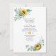 Fleur de soleil brillant et eucalyptus de la verdure sauvage thème mariage invitent personnalisable à votre événement spécifique.