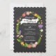 Une suite de faire-part de mariage boho avec une couronne de fleurs blanches composée d'une flore boisée colorée. L'arrière - plan du tableau de bord donne à ce design une ambiance décontractée qui est parfaite pour les mariages extérieurs.