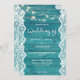 Invitation Mariage Bois Bleu & Dentelle & Guirlande Lumineuse