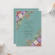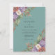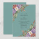 Cette conception présente un fond sarcelle lunatique orné d'éléments botaniques aquarelles riches. Des grappes de roses teintées de rouille, de lilas violets et de fleurs couleur crème créent une atmosphère romantique. Des feuilles d'eucalyptus douces et un feuillage terreux terminent le look, ce qui le rend idéal pour un événement saisonnier sophistiqué.
