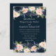 Invitation Mariage botanique blanc bleu profond de la Marine