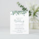 Invitations amis et famille à votre mariage avec ces cartes postales rustiques mais modernes blanc et vert eucalyptus faire-part de mariage budget. Ces cartes de faire-part de mariage budgétaires ont une option d'enveloppe. Personnalisez avec les noms, la date du mariage, l'emplacement. Ajoutez toute autre information au verso. Ces invitations uniques de mariage verdoyantes feront une impression durable, vos invités s'assureront de sauver la date! DROIT D'AUTEUR © 2020 Judy Burrows, Black Dog Art - Tous droits réservés. Invitation Mariage Botanique Budget