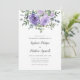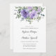 Ces invitations de mariage ont un motif floral aquarelle avec des roses pourpres poussiéreux avec feuillage de feuilles d'eucalyptus. Personnalisez-les avec votre texte. Suite mariage et produits d'accueil correspondants sont également disponibles.